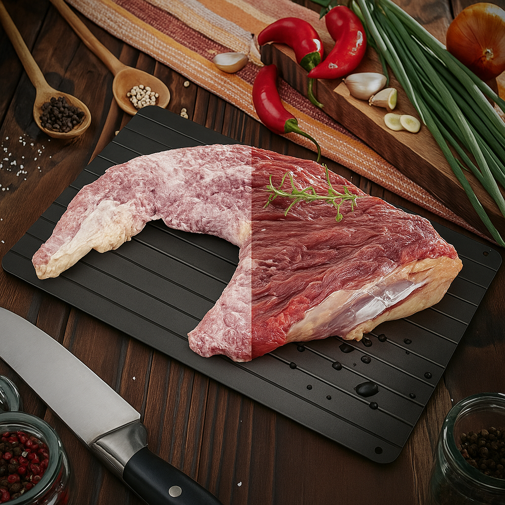 Esqueça esperar horas para descongelar carne e outros alimentos. Com esta tábua de descongelamento rápido, em apenas 30 minutos sua comida está pronta para ir ao fogo, sem micro-ondas e sem perder textura ou sabor!