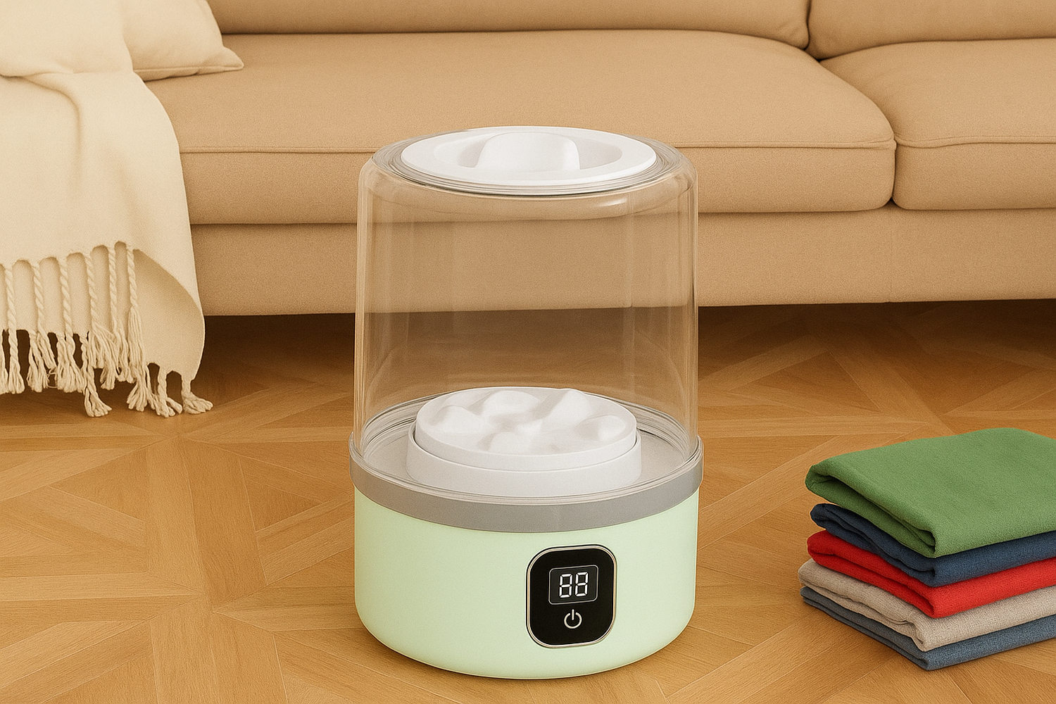 Chega de gastar água e tempo lavando peças pequenas na máquina! Com esta mini lavadora portátil, você lava roupas íntimas, meias e peças delicadas com praticidade e economia!